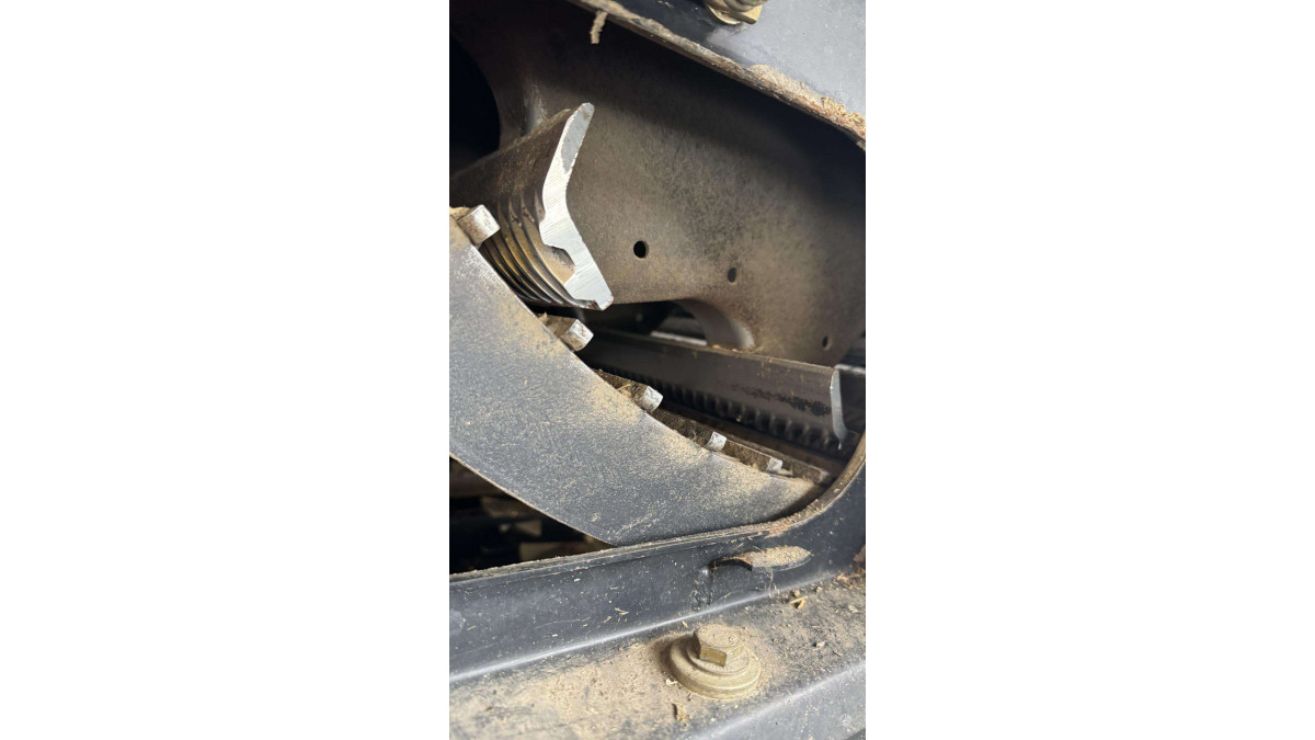 Akmenų gaudyklė atsidaro iš šono ir akmenys patys iškrenta, nereikia atskirai jų ištraukinėti, užtenka rankeną nuspausti žemyn.