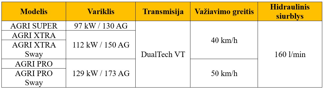 - Maksimali keliamoji galia – 4,6 t (lyginant su 542-70 modeliu, padidėjo 10 %).