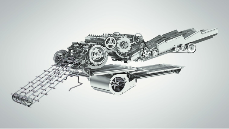 Naujųjų CX8 kombainų nuožulni kamera buvo iš pagrindų patobulinta, kad pagerintų jau ir taip neįtikėtinai našų veikimą. Transporterį sudaro keturios grandinės su jungiamaisiais skersiniais, todėl javų tiekimo procesas yra dar sklandesnis. Tolygiam tiekimui užtikrinti transporteris yra tokio pat pločio kaip ir kūlimo būgnas,taigi, žemės ūkio technika išvengia masės sankaupų, kurios gali neigiamai paveikti našumą.