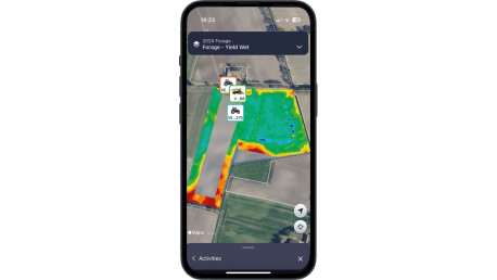 The Farm kortelėje FieldOps™ portale galite analizuoti visus lauko duomenis. Ši informacija realiu laiku įrašoma jūsų kombaino derliaus nuėmimo metu ir perduodama belaidžiu būdu į FieldOps™ per telematikos sistemą.