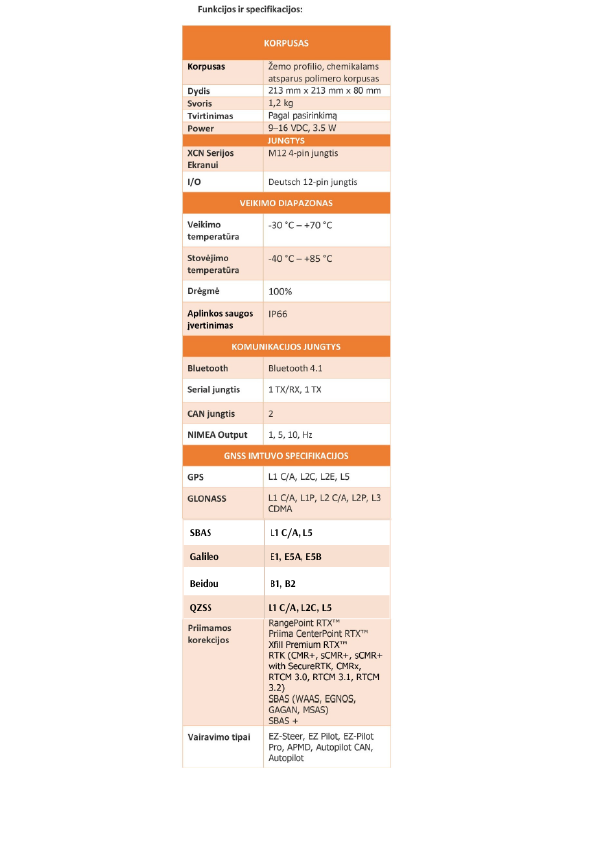 - -Priima CenterPoint RTX™, RangePoint RTX™, Xfill Premium RTX™ ir RTK korekcijos signalą.